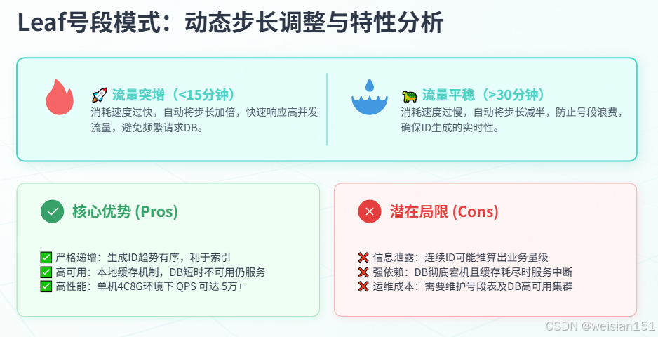 ✅ Leaf号段模式:双Buffer优化、动态步长、DB容灾;