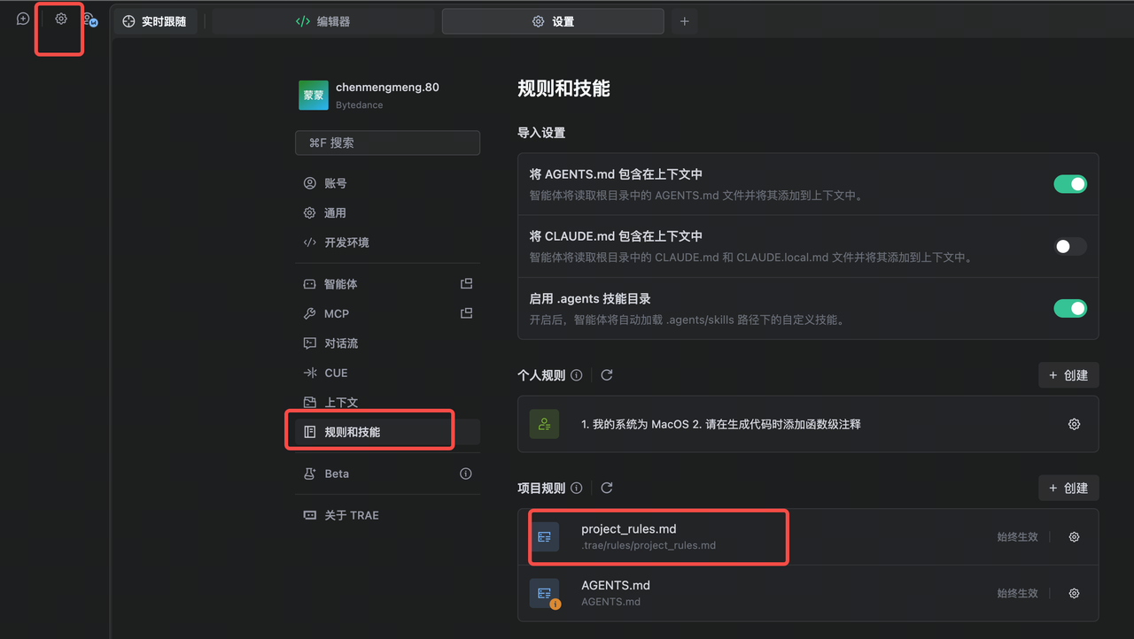 其实在平时开发过程中,大多数时候我们仅需关注自己团队业务所涉及的代码目录即可。所以,我们可以在设置------规则和技能------project_rules.md 里面显式指定Trae需要关注的代码目录,这样可以大大节省搜索时的资源占用和运行耗时。以代码目录 xx/yy/ 为例: