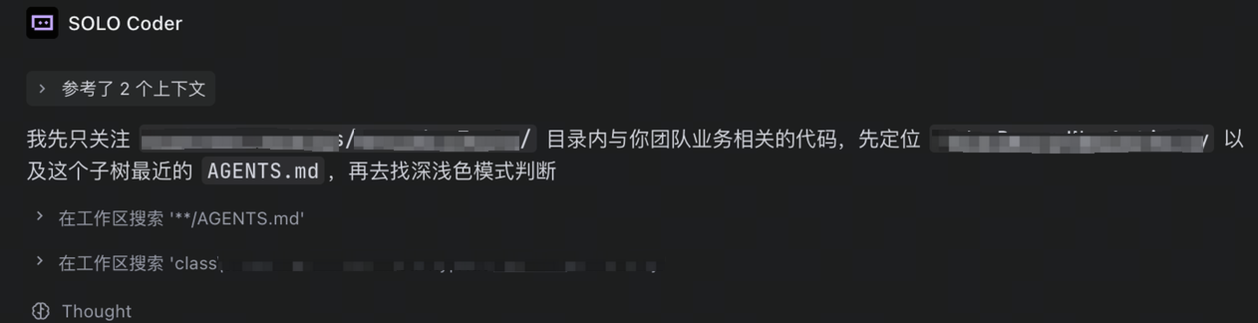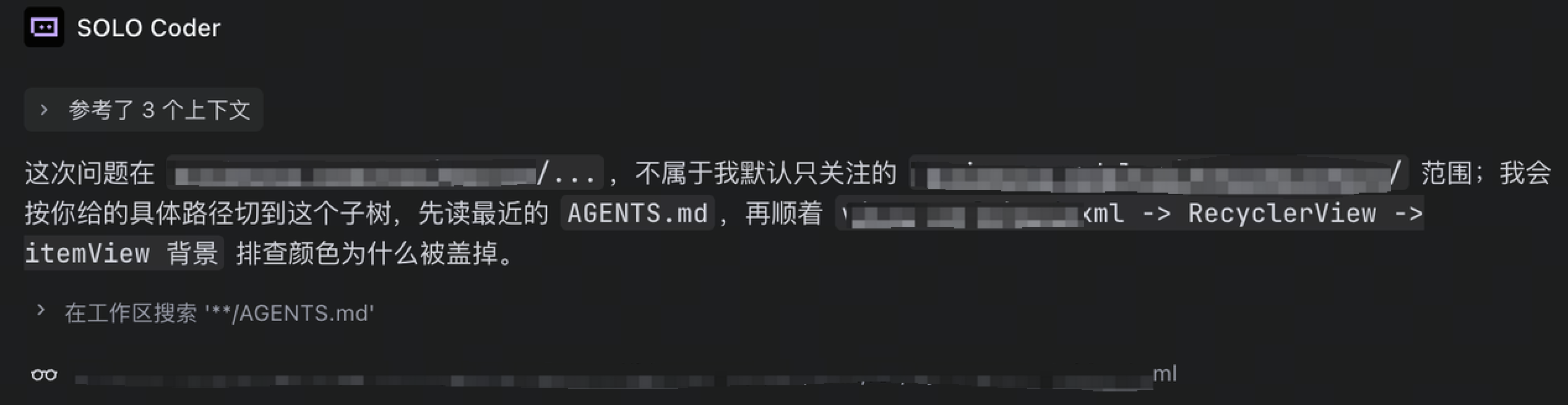 指定代码目录之后,Trae 运行的时候就会仅关注特定代码目录并在会话中展示出来:
