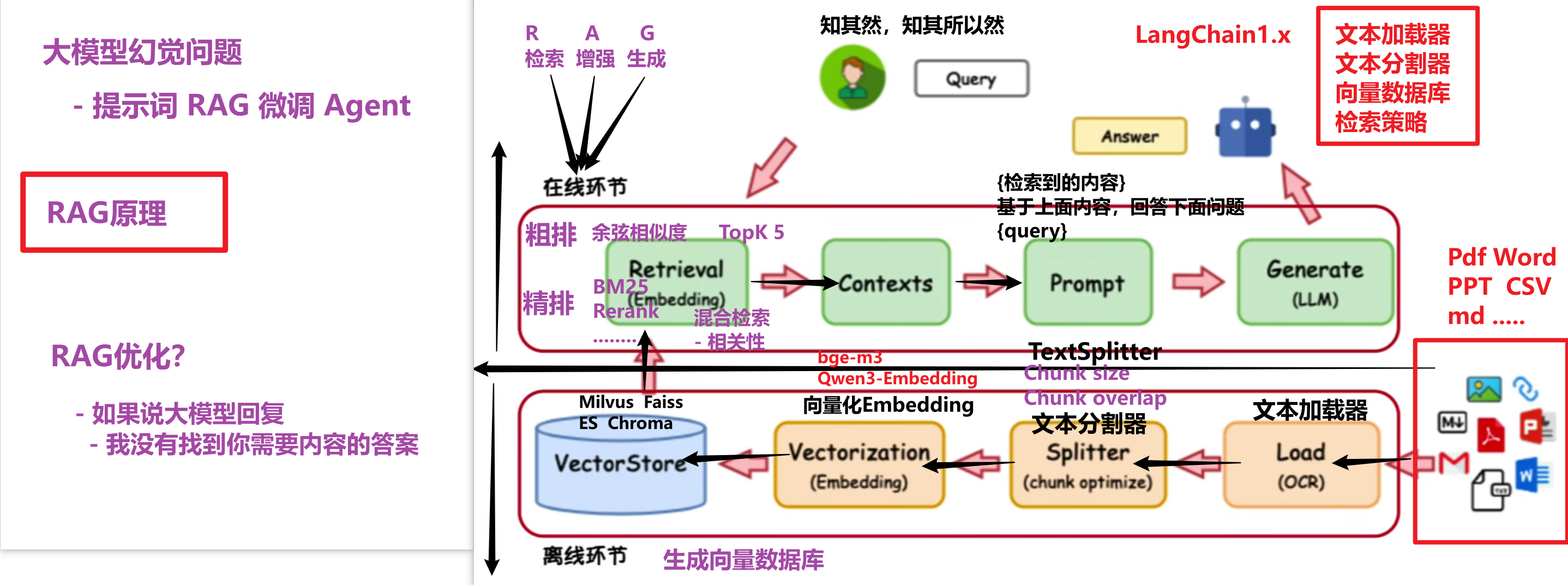 | 生成 Generation | 大模型基于"问题 + 检索内容"生成答案 |