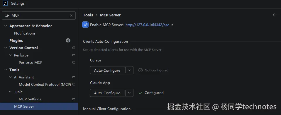 第一步:开启 MCP 服务。打开 Settings → 搜索MCP Server。