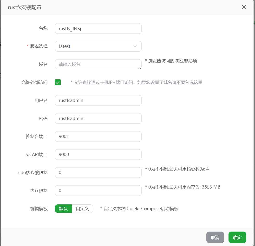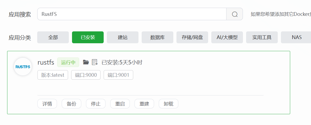 安装RustFS容器