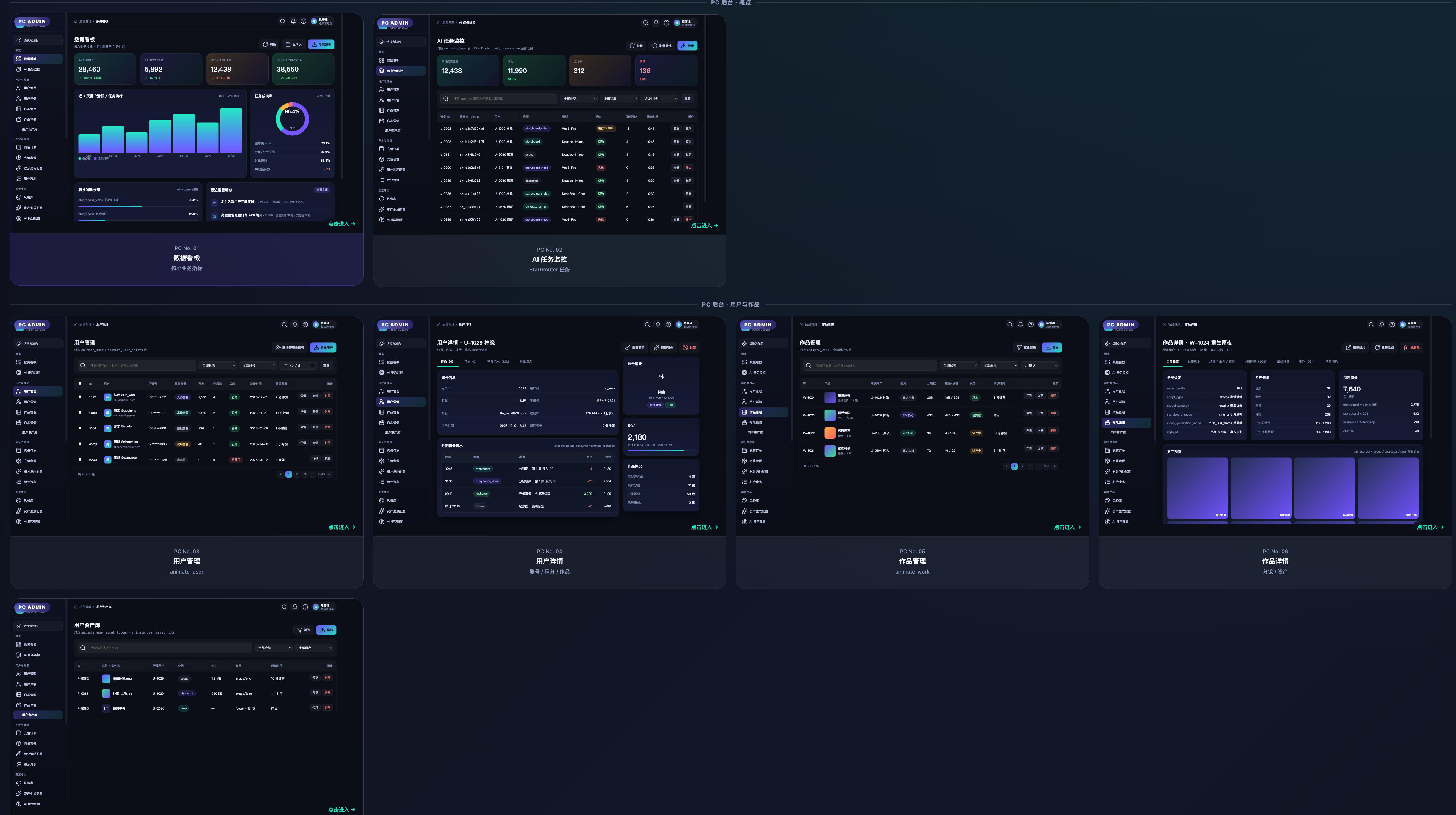 - 作品管理:所有用户作品的分镜 / 资产 / 任务追溯