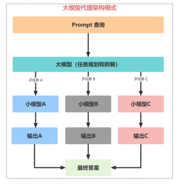 复杂 Query → 大模型(分解任务)→ 多个专家小模型并行 → 整合答案
